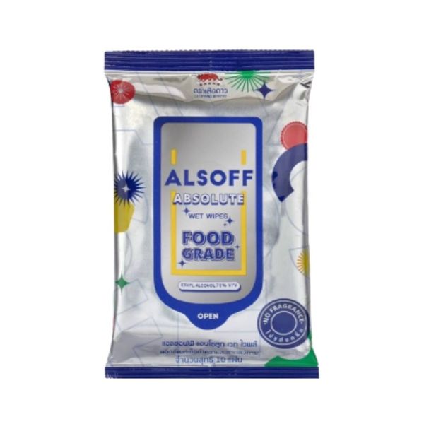 ALSOFF ABSOLUTE WET WIPES FOOD GRADE ผ้าทำความสะอาดผสมแอลกอฮอล์ 70% (10 แผ่น)