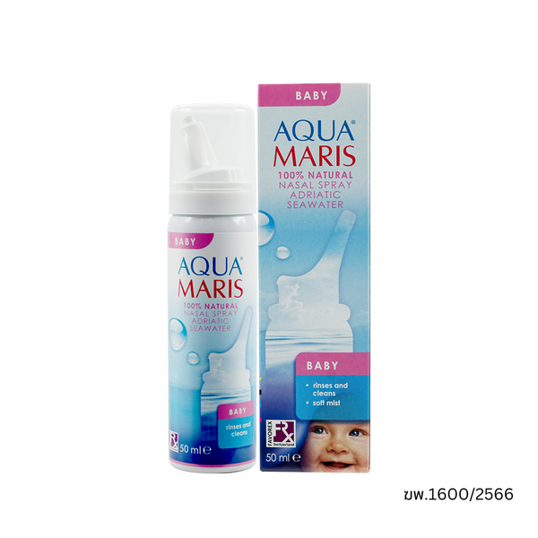 Aqua Maris Baby Nasal Spray สเปรย์พ่นล้างจมูกสำหรับเด็ก ช่วยทำความสะอาดโพรงจมูกอย่างอ่อนโยน ชะล้างสิ่งแปลกปลอม เชื้อโรค และสารก่อภูมิแพ้ พร้อมเพิ่มความชุ่มชื้นให้เยื่อบุโพรงจมูก ช่วยให้เด็กหายใจได้สะดวกขึ้น