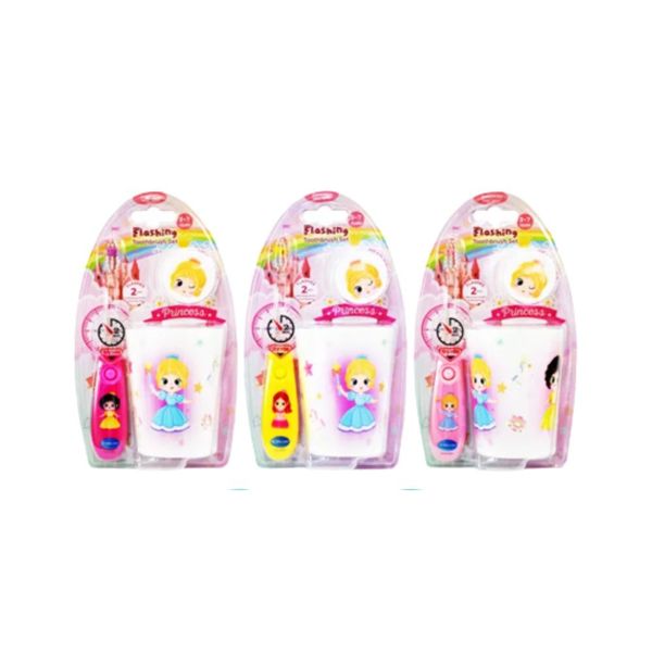 ชุดแปรงสีฟัน DR.PHILLIPS ลายเจ้าหญิง สำหรับเด็กอายุ 3-7 ปี ประกอบด้วยแปรงสีฟัน ขนแปรงนุ่ม ปลายมนกลม ปลอดภัยต่อเหงือกและฟัน พร้อมแก้วและฝาครอบแปรง สีสันสดใส ช่วยส่งเสริมการแปรงฟันอย่างถูกต้องและสนุกสนาน