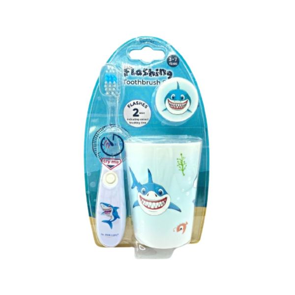 DR.PHILLIPS ชุดแปรงสีฟันสำหรับเด็ก อายุ 3–7 ปี พร้อมแก้วและฝาครอบ ลายฉลาม