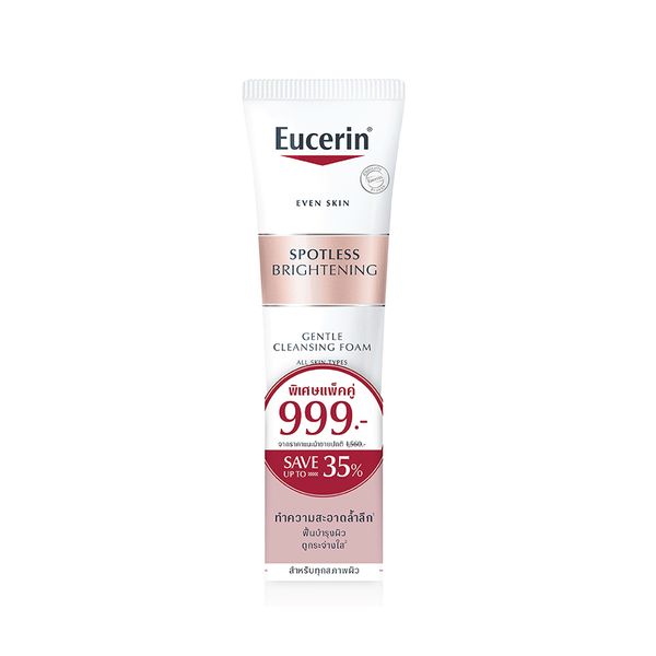 Eucerin Spotless Brightening Gentle Cleansing Foam 150g แพ็คคู่ โฟมทำความสะอาดผิวหน้าเพื่อผิวขาวกระจ่างใส สูตรอ่อนโยน ปราศจากแอลกอฮอล์ เหมาะสำหรับผู้ที่มีปัญหาฝ้า กระ จุดด่างดำ ช่วยขจัดเซลล์ผิวคล้ำเสียและความมันส่วนเกิน พร้อมเติมความชุ่มชื้นให้ผิวหน้า
