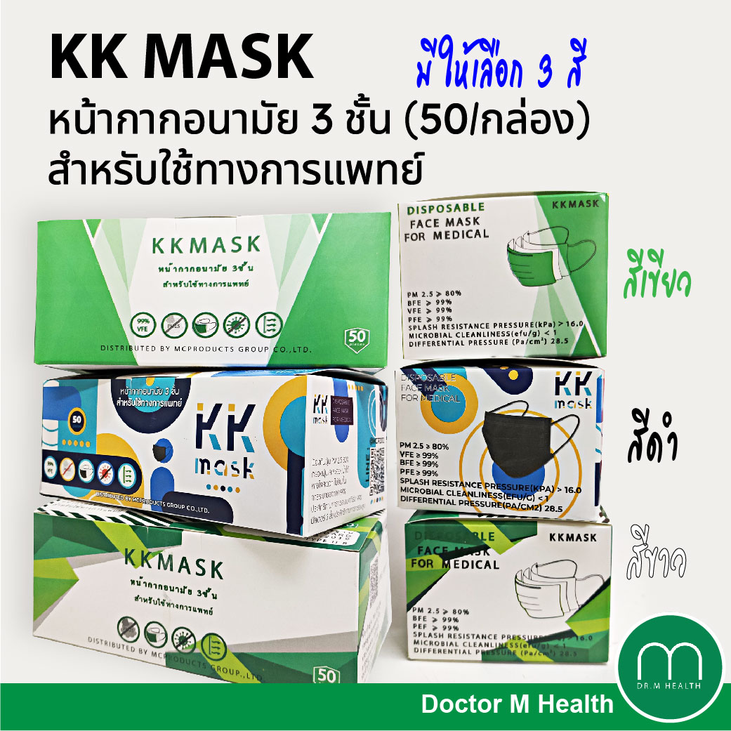 KK MASK หน้ากากอนามัย 3 ชั้น (50/กล่อง) กรองฝุ่น และ ละอองน้ำได้ดี