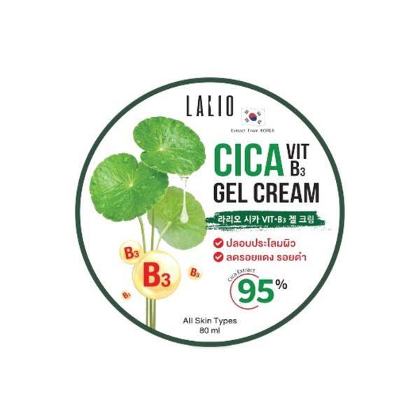 LALIO Cica Vit B3 Gel Cream เจลครีมบำรุงผิวหน้า อุดมด้วยสารสกัดจากใบบัวบกและวิตามินบี 3 ช่วยปลอบประโลมผิว ลดการระคายเคือง ลดรอยแดง รอยดำ พร้อมเพิ่มความชุ่มชื้นให้ผิว เหมาะสำหรับทุกสภาพผิว แม้ผิวแพ้ง่าย