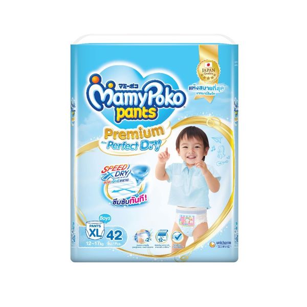 MAMY POKO Pants Premium Extra Dry กางเกงผ้าอ้อมสำหรับเด็กชาย Size XL (42 ชิ้น)