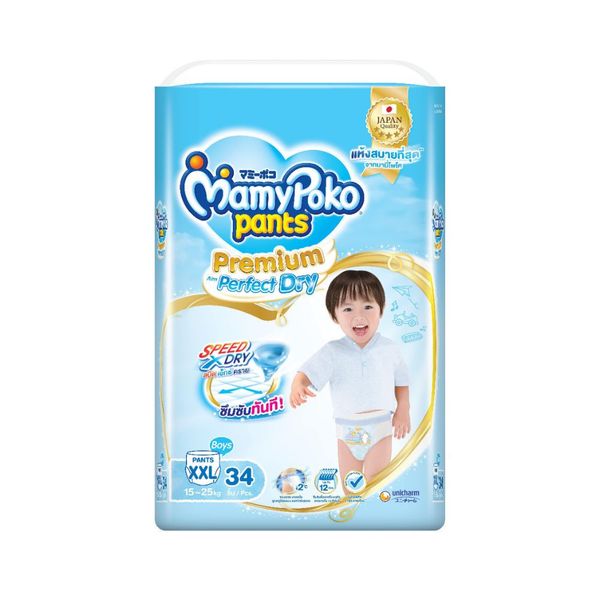 MAMY POKO Pants Premium Extra Dry กางเกงผ้าอ้อมสำหรับเด็กชาย Size XXL (34 ชิ้น)