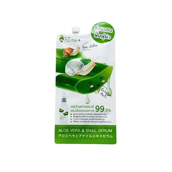 MUI MUI Aloe Vera And Snail Serum เซรั่มบำรุงผิวหน้าจากสารสกัดว่านหางจระเข้และเมือกหอยทาก ช่วยซ่อมแซม ฟื้นฟูผิว ลดการระคายเคือง ปลอบประโลมผิว และรักษาความชุ่มชื้นให้ผิวยาวนาน