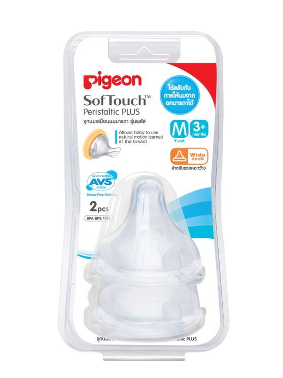 Pigeon จุกนมเสมือนนมมารดา รุ่น Plus ขนาด M แพค 2 ชิ้น สำหรับทารกอายุ 3 เดือนขึ้นไป ผลิตจากซิลิโคนคุณภาพสูง ทนความร้อนได้ถึง 120 °C มีความนุ่มพิเศษและยืดหยุ่นสูง ออกแบบตามขั้นตอนการดูดนมตามธรรมชาติ ให้ทารกดูดนมเหมือนดูดนมจากอกมารดา