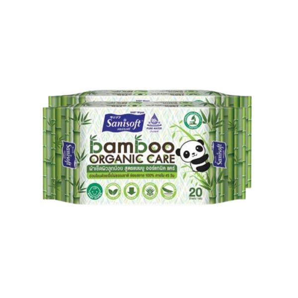 Sanisoft Bamboo Organic Care Set ผ้าทำความสะอาดผิวลูกน้อย สูตรออแกนิค แคร์ อ่อนโยนด้วยเยื่อไผ่ธรรมชาติ 100% เหมาะสำหรับทารก เด็ก และผู้ใหญ่ บรรจุ 20 แผ่น x2 ห่อ ใช้งานสะดวก เพิ่มความชุ่มชื้นต่อผิว และเป็นมิตรต่อสิ่งแวดล้อม