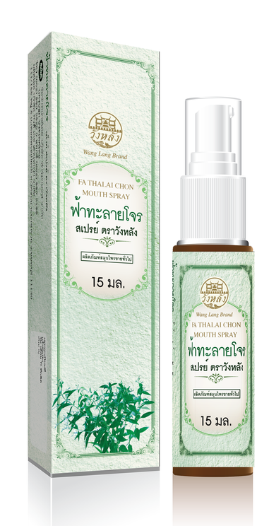 วังหลัง Refreshing Mouth Spray 15 กรัม สเปรย์ระงับกลิ่นปาก สูตรสมุนไพรฟ้าทะลายโจร พร้อมสารสกัดสมุนไพรนานาชนิด ช่วยลดกลิ่นปากจากเชื้อแบคทีเรีย สร้างลมหายใจหอมสดชื่น และเสริมสร้างภูมิต้านทานในช่องปาก